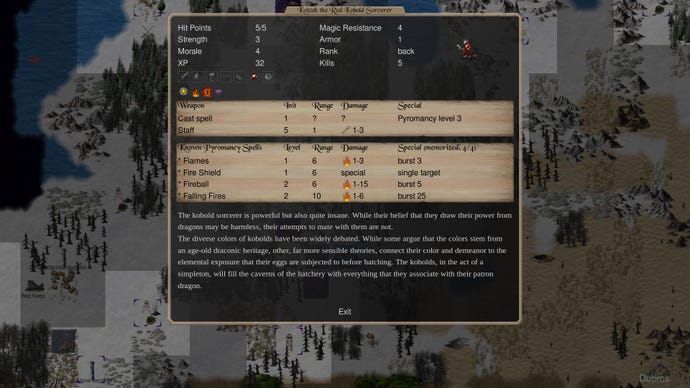 Take the kobolds. They're so weak that their defence strategy is attracting dragons by offering them gold, and kobolds to eat. Even then, a dragon can't be led, and will periodically leave of its own accord to terrorise a nearby settlement. You need a kobold's mindset: lurking in your lair and casting divinations to find a mine that could become a new hatchery. With luck, you'll eventually gather kobolds of each of the five colours, giving you fodder who are immune to elemental attacks, letting them charge while your gem-enhanced sorcerers bathe the world in fire or poison. And then you'll bring your winged prophet home to prepare a war, using that teleport scroll you found to hurry the journey... which it turns out was cursed, and instead your prophet and her bodyguards are transported to Hades.