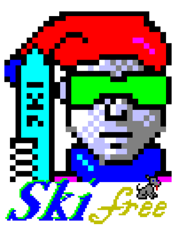 SkiFree launched in 1991 as part of a game compilation for Windows 3.0, the Microsoft Entertainment Pack 3. It's a cheery little arcade game, where you go bouncing over moguls, dodging trees, catching big air off rainbow ramps, and falling on your bum. And, eventually, you reach the abominable snowman. This terrible pixel art creature will chase you downhill until you inevitably make a mistake. You're done. You're dinner.
