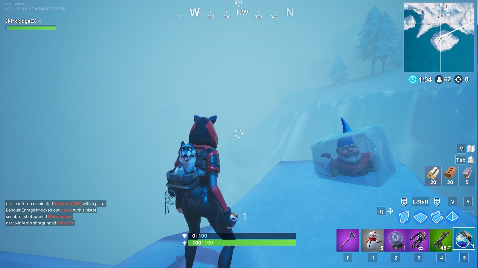 Towards the south-western point of the map, there is a separate island which has a bunker of sorts on it. Fly there using a X-4 Stormwing (More on them in our Fortnite vehicles guide) and land safely so that you can get off the island easily. This gnome is frozen on the north-western tip of this island, facing the mainland.