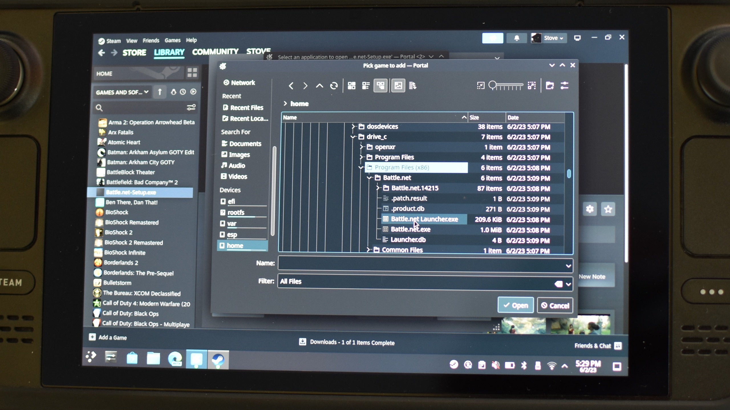 I also highly recommend using a USB-C hub or Bluetooth to connect a mouse to your Steam Deck. This Battle.net installation method isn’t impossible using just the Deck’s trackpads, but it does involve delving deep into file folders, which on the 7in screen is far more comfortably done with a mouse. Connecting a keyboard would also make things slightly easier, though isn’t vital since you can just open the Steam Deck’s onscreen keyboard by holding the Steam button and tapping X. It's up to you, though. Our best Steam Deck accessories guide has some USB-C hub/docking station recommendations that will make hooking up peripherals much easier.