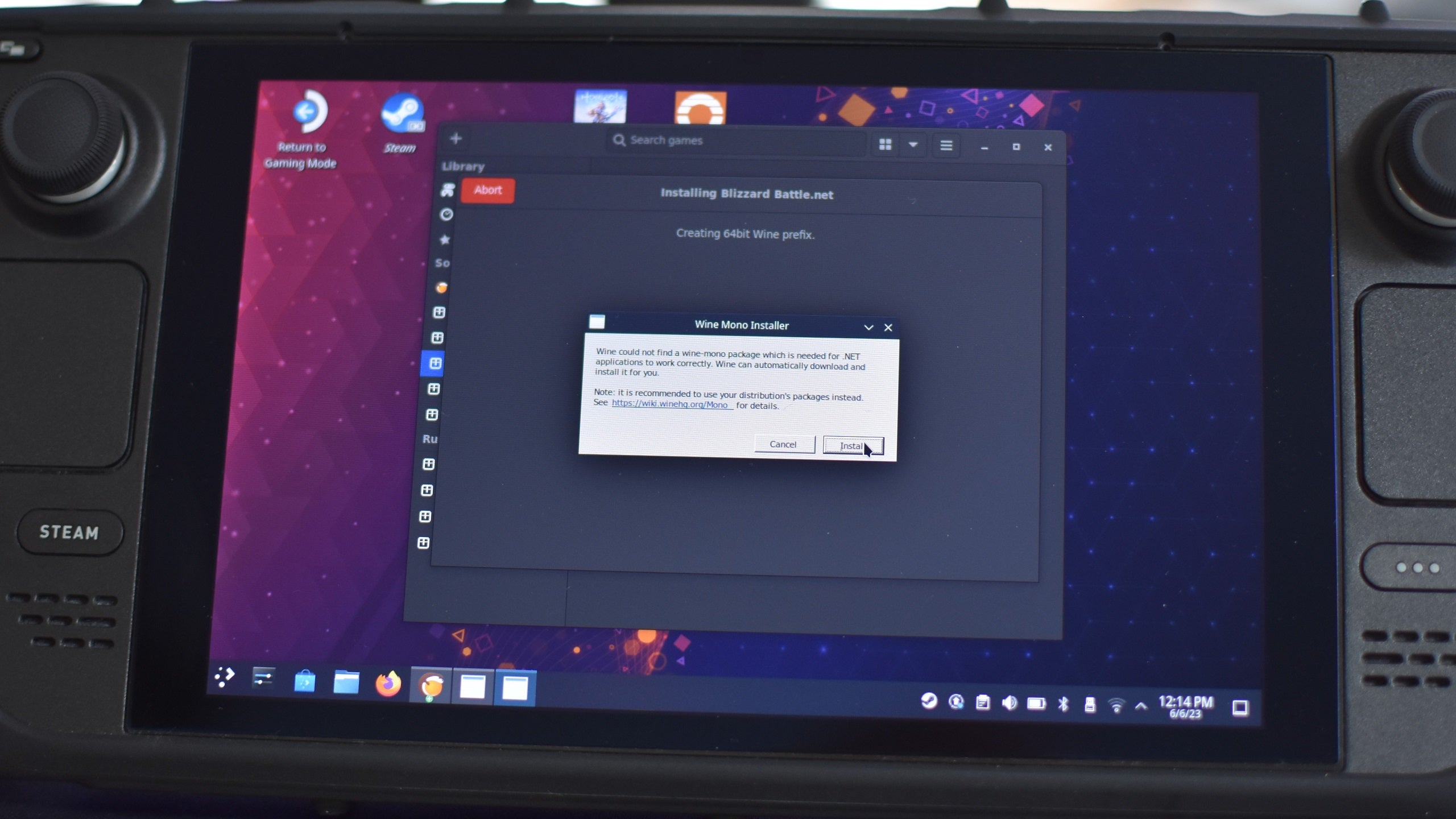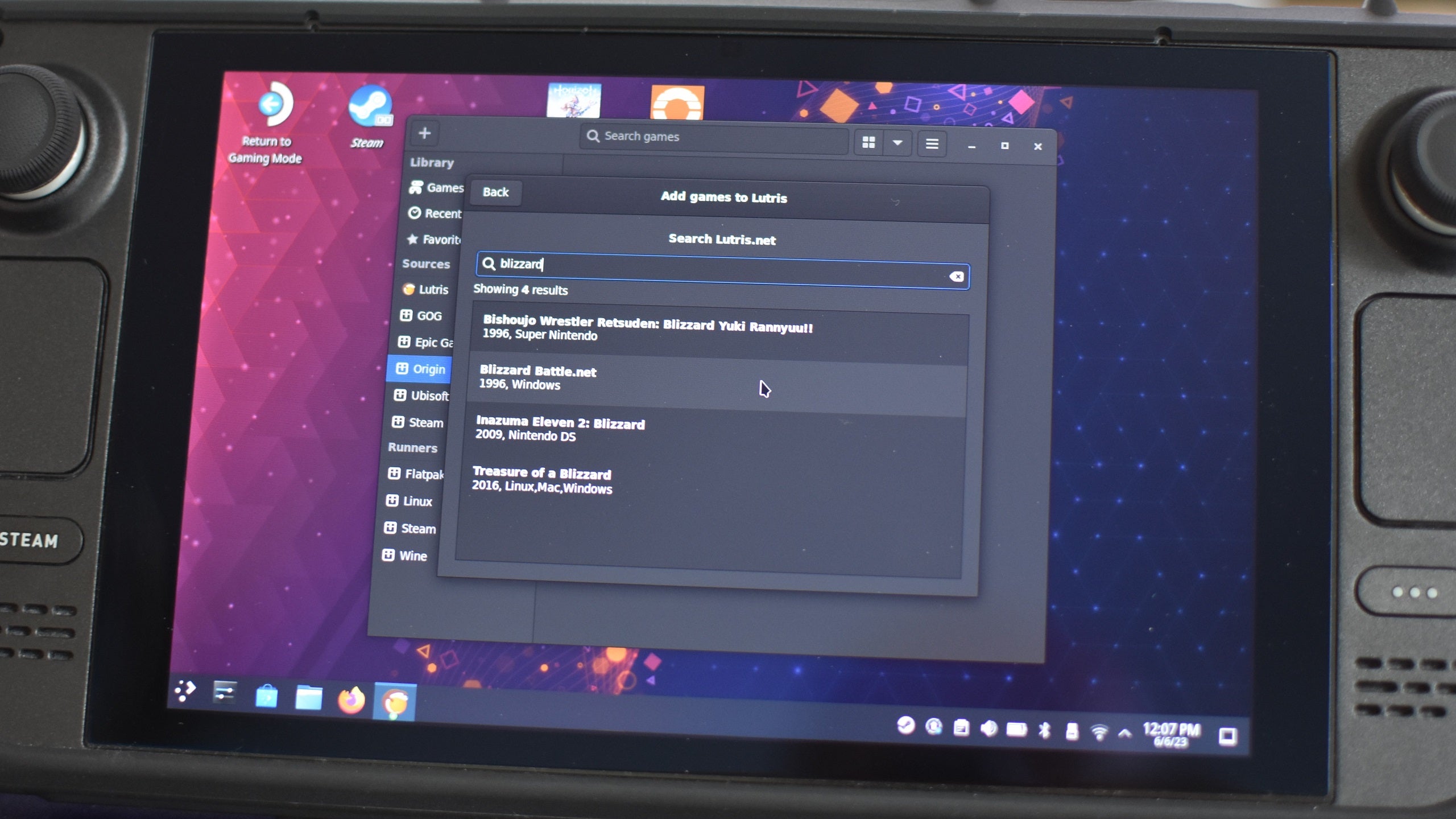 It’s still best done with a mouse, mind, so grab your USB-C hub and get one plugged in. A keyboard is essential, too – the first time I needed to log in to Battle.net via Lutris, the Deck’s onscreen keyboard didn’t work. On the bright side, there’s no need to install Proton GE or anything else in advance of beginning this method.