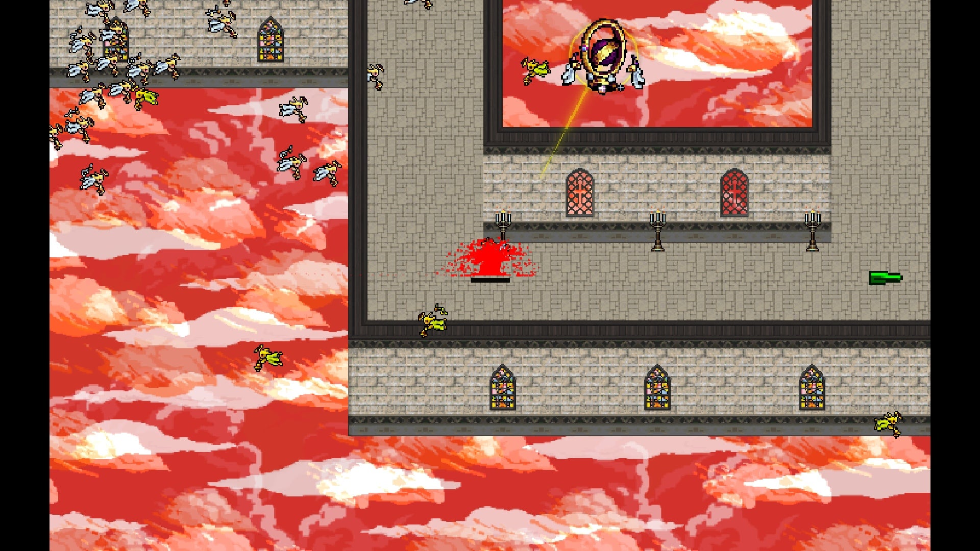 The new stages aren’t the wide, open fields of the first level either. None of them radically change what you get up to, but they do mean you can derive some satisfaction from figuring out weapons and characters that suit, say, a stage where the enemies entirely come from above and below. Magical accordion, go go go.