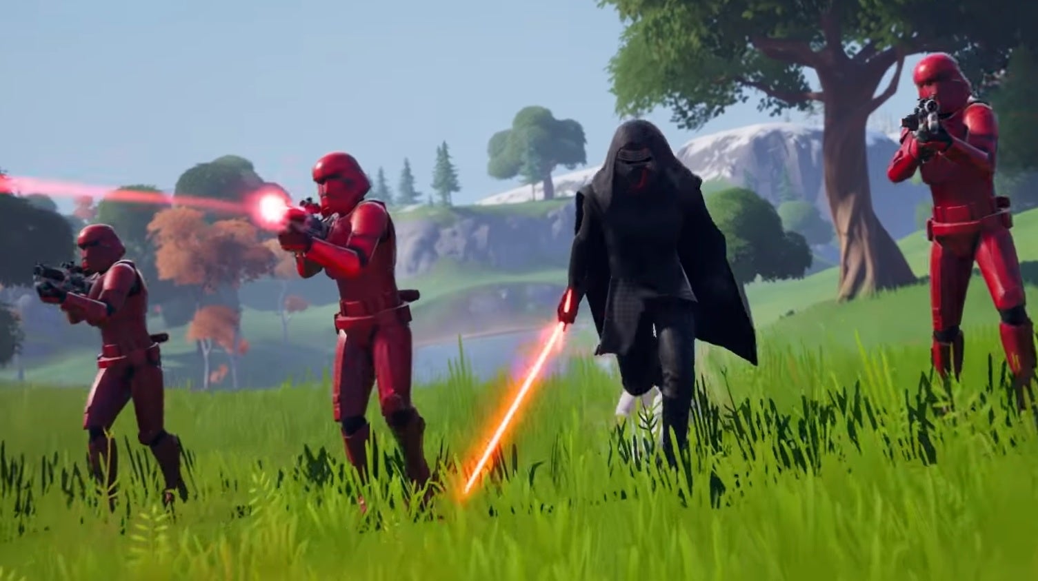 It's that time of year again. A new Star Wars movie is coming, which means that Disney have partnered with countless other brands to make sure there are stormtroopers and lightsabers and blasters in your face every day. One of their latest partnerships is with Fortnite, where Geoff Keighley, director J.J. Abrams, and Ben Schwartz (as a stormtrooper) got together in-game on Saturday to show off a new Rise of Skywalker trailer for players. It was only a ten or so minute event but the short movie clip was followed by lightsabers and blasters popping up on the Fortnite island for players to wield for the next week.